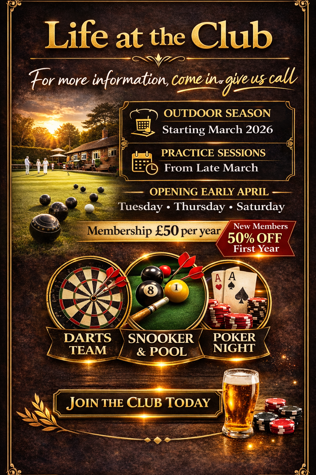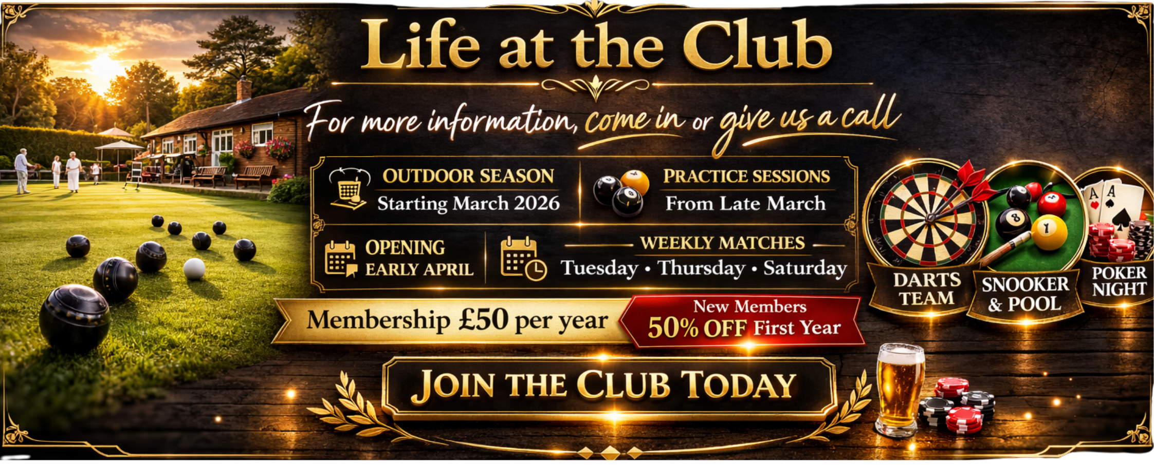 Whether you're enjoying a quiet drink in the bar, watching live sport, playing darts or snooker, or attending one of our regular entertainment nights, the club offers a relaxed and friendly atmosphere for everyone.